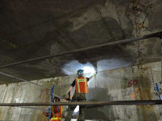 漏水部位基層比較差的,我們稱之為軟基層,而軟基層的常規(guī)處理方案是用鏨子將軟基層清理干凈,深度和寬度不定,只要清理到較硬的基層為止即可,然后用堵漏劑攪拌成粘稠狀迅速將軟基層填平加固,待完全干透并凝固之后,即可打眼注漿。